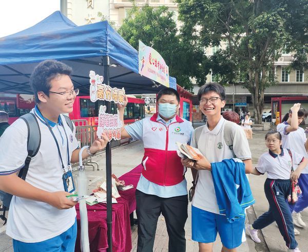 团南沙区委在广州市南沙黄阁中学配置“助力中考加油站”,并备皆150份学习工具包、小扇子、瓶装饮用水及医疗箱等物质。志愿者们在科场进口配置临时休息区,为候考家长分发扇子和饮用水解暑,用详尽入微的干事为南沙学子落幕炎夏酷热。